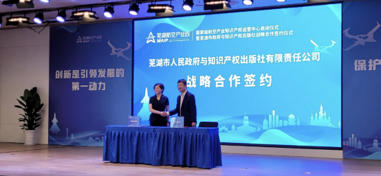5月16日上午,国家级航空产业知识产权运营中心(以下简称运营中心)启动仪式暨芜湖市人民政府与知识产权出版社有限责任公司(以下简称出版社)战略合作签约活动在安徽省芜湖市成功举办。出版社党委副书记、副总经理李程,安徽省知识产权事业发展中心主任吴建中,芜湖市人民政府副市长丁百静出席活动。芜湖市湾沚区委副书记、区长李国柱主持活动。